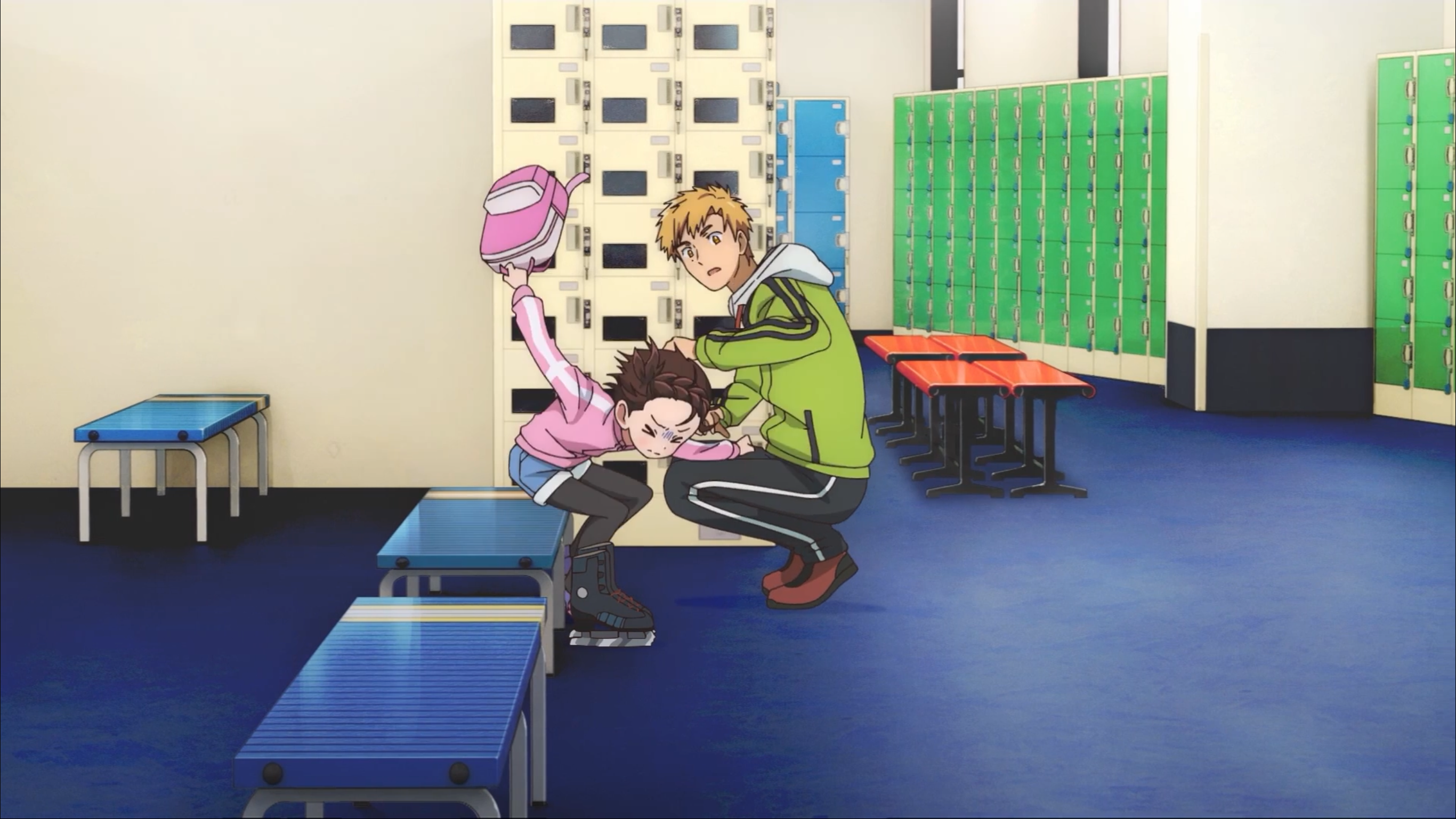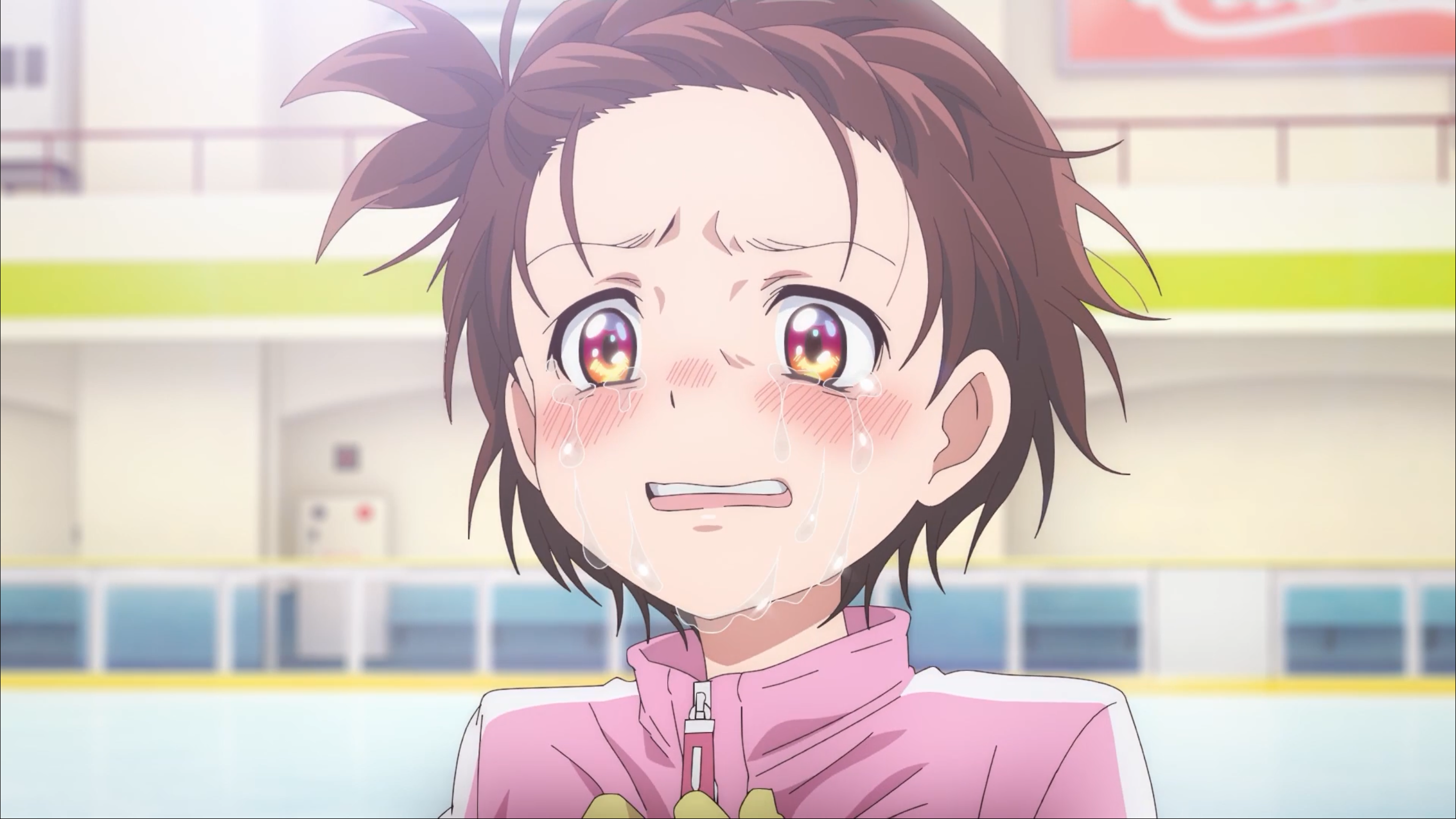 その後,自らコーチを引き受けることを宣言し,いのりにスケートを継続させることを懇願する司。この辺りは原作の作画の描線に凄まじほど勢いがあり,司の心の叫びを描線で伝えている。しかしマンガの荒々しい描線は,アニメではどうしても“クリーンナップ”せざるを得ない。それを補って余りあるのが,大塚剛央の演技だ。勢い余って噛み気味・裏返り気味になったその演技は,例えば『【推しの子】』のアクアのような沈着冷静なキャラとは好対照だ。大塚の演技の幅の広さを窺わせる。第1話の締めくくりとして,この春瀬と大塚の演技の貢献度は極めて高い。