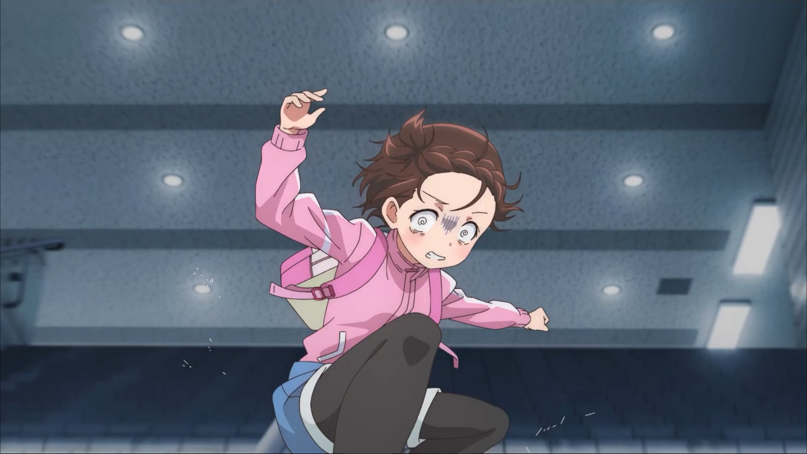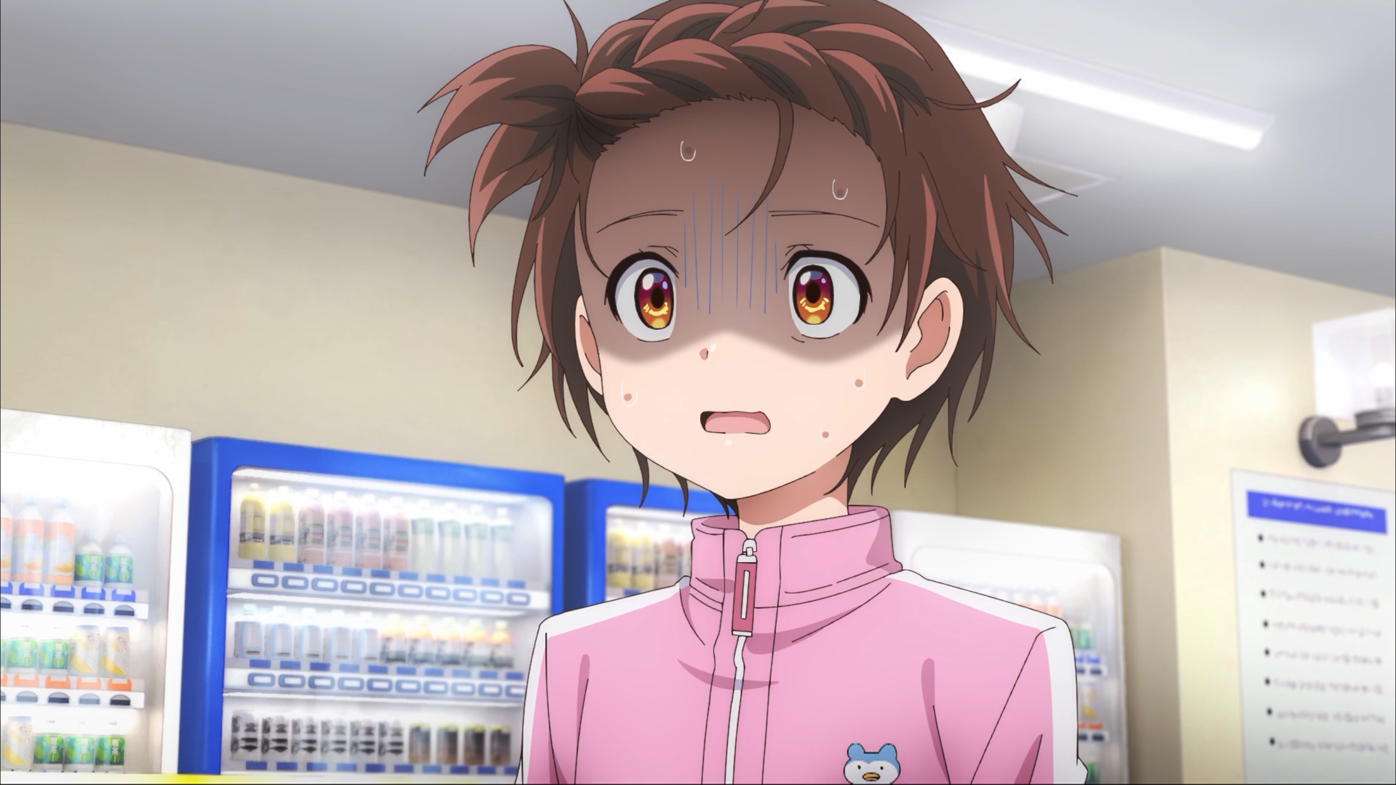 いのりの目のクルクルもあって,シーン全体の雰囲気はコミカルなのだが,身体描写そのものはリアル寄りに作画されている。