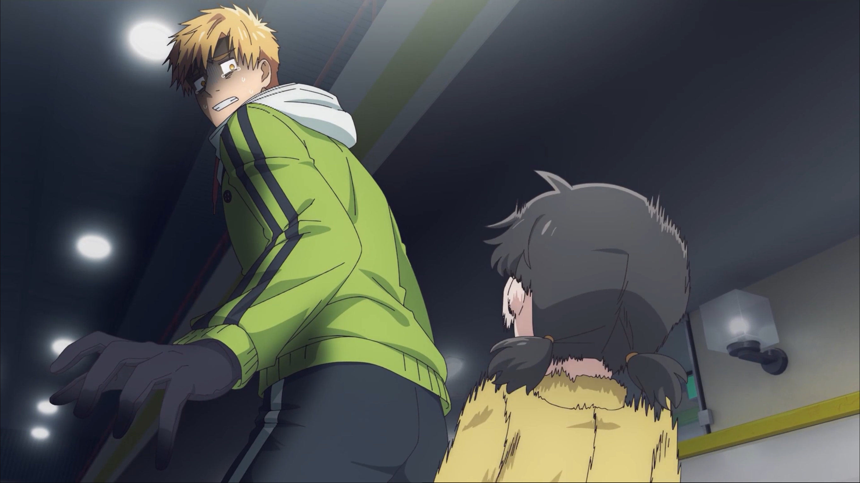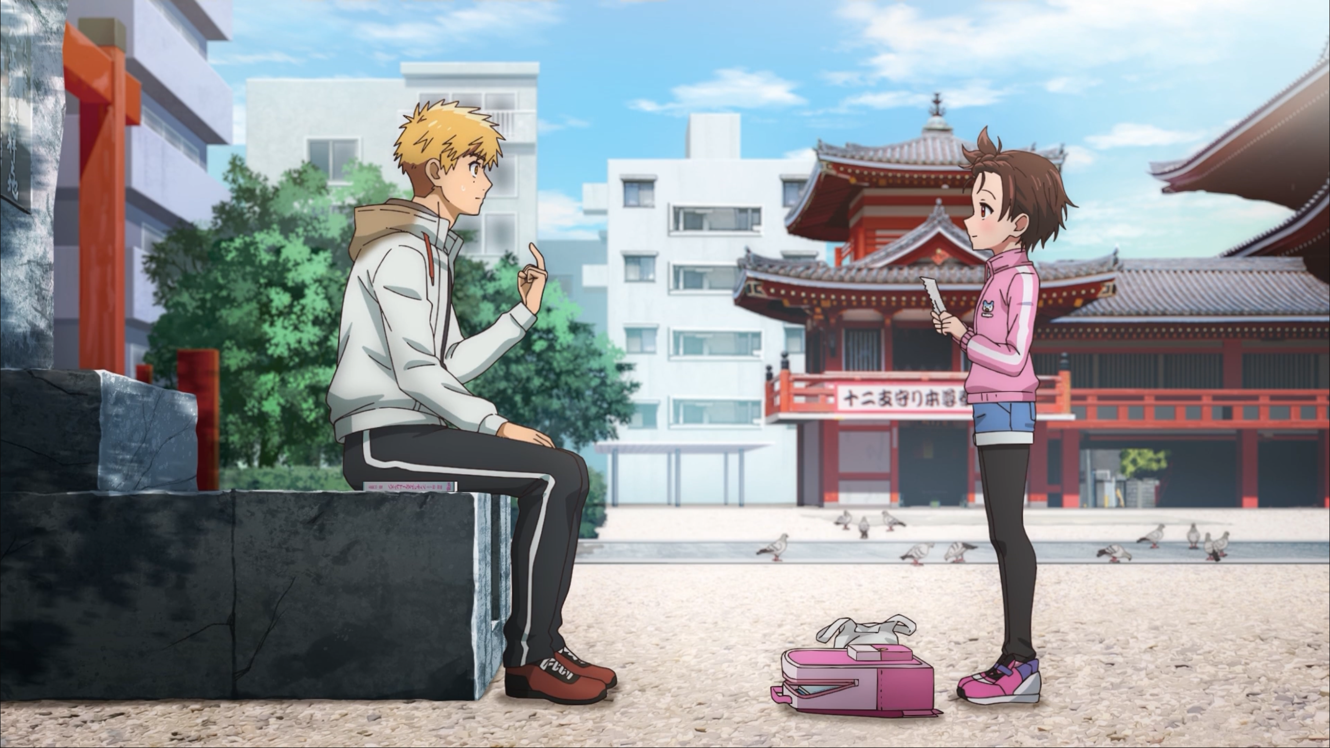 さらにいのりとの出会いのシーンでは,司が仁王立ちになるカットを挿入(アニオリ)することで,いのりに対する司の威圧感が加味されている(下図)。